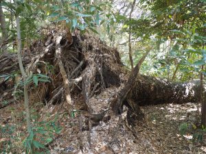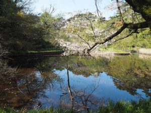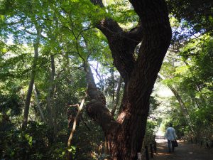 話が前後しますが、園内に入り雑木林の間の道を歩いていると、程なく左右が高くなっていることに気づきます。城の土塁跡で、歩き進むにつれその規模の大きさにも目を見張ることになりますが、そうした中世の城郭跡地に江戸時代の寛文四年(一六六四)松平讃岐守が下屋敷を構えたということです。(下屋敷の前は増上寺の領地でした。)明治になると国有化され、旧海軍の火薬庫として使われたこともありますが、大正時代に宮内省所管の白金御料地となり、昭和に天然記念物および史跡に指定され、国立自然教育園として公開、現在に至っています。