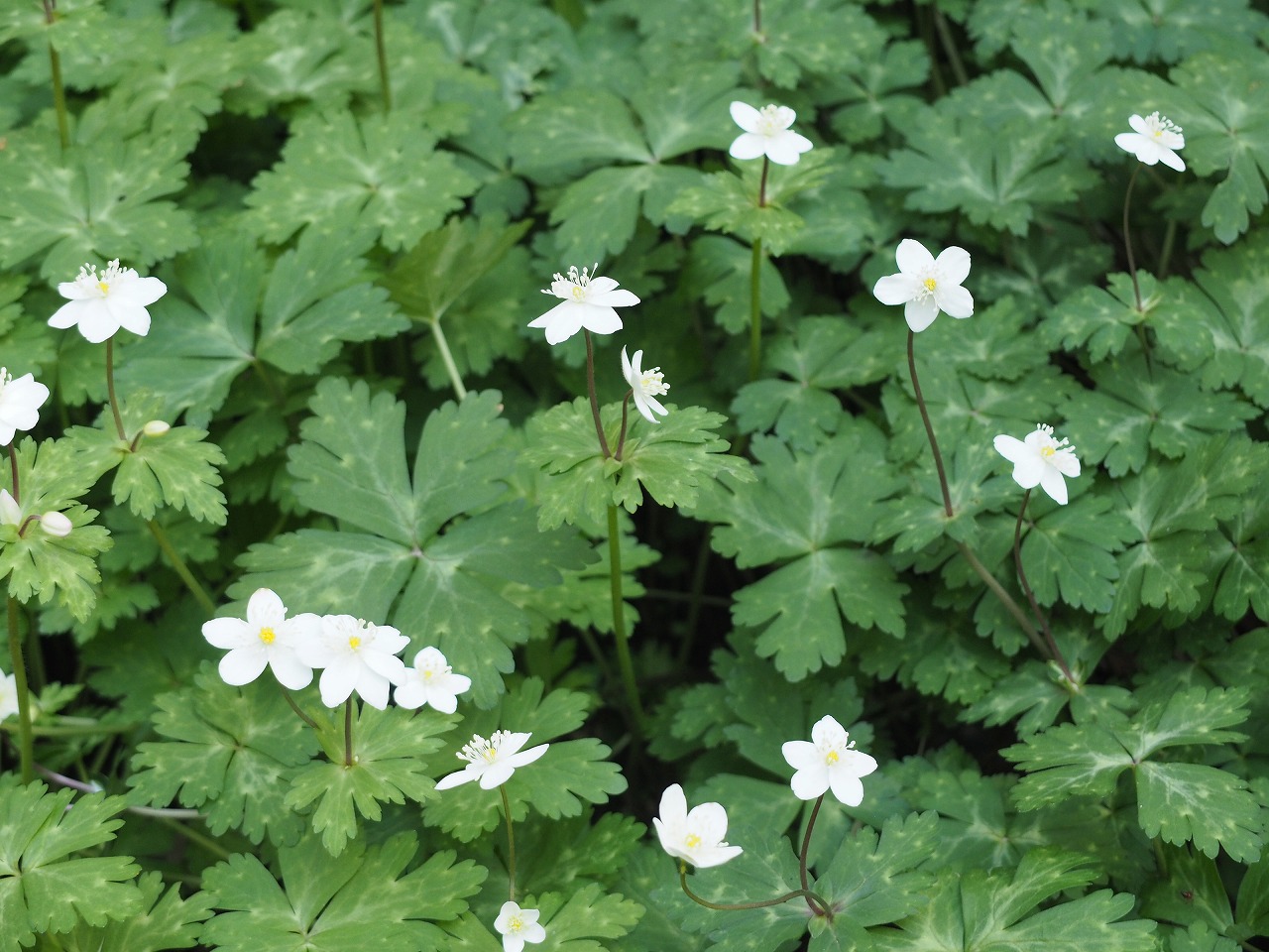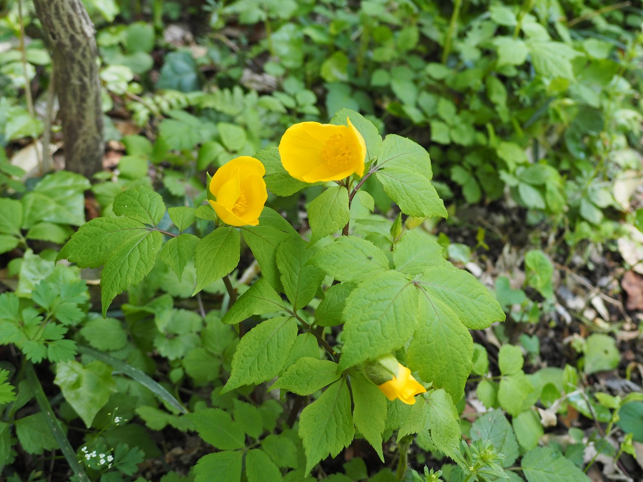 昨年十月にも訪れていますが、植物の力を最も感じることができるのは四月から五月にかけてかもしれません。鬱蒼とした雑木林を進むと、山吹に続き、イチリンソウ、ラショウモンカズラ、ニリンソウ、ヤマブキソウ……と次々に春の花々が目に留まります。イチリンソウもニリンソウも山地に咲くものと思っていたので、いかにここが自然の環境に近いかということでしょう。樹間から注ぐ木漏れ日を喜ぶ植物たちの歌声が聞こえてくるようです。昨年訪れた上高地の風景が脳裏をよぎりました。