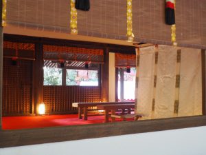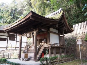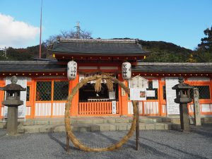 本殿はこの奥にありよく見えませんが、鎌倉時代初期のもので国の重要文化財に指定されています。また本殿には、拝観はできませんが菟道稚郎子命の御神像がお祀りされています。