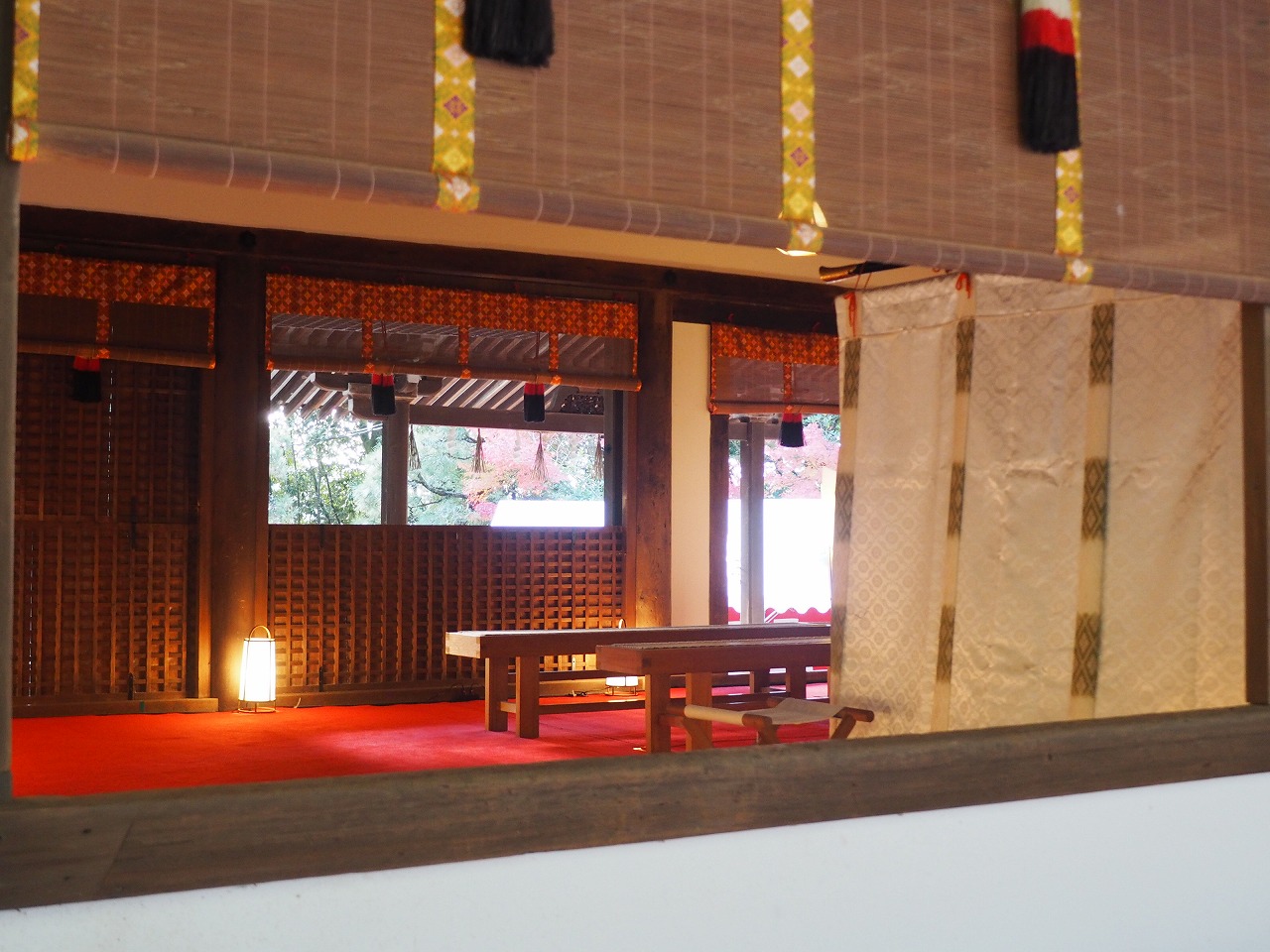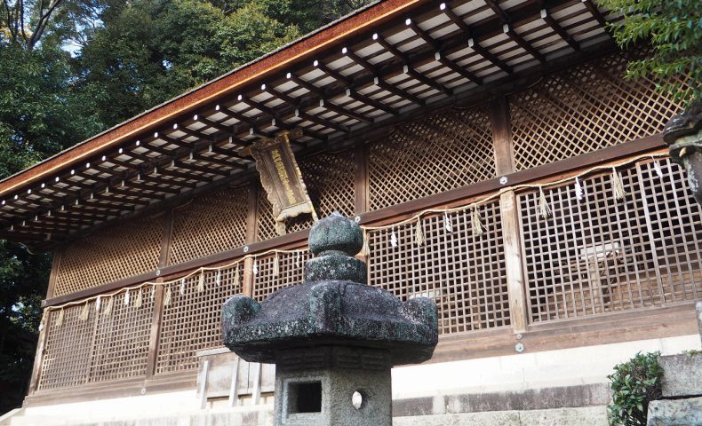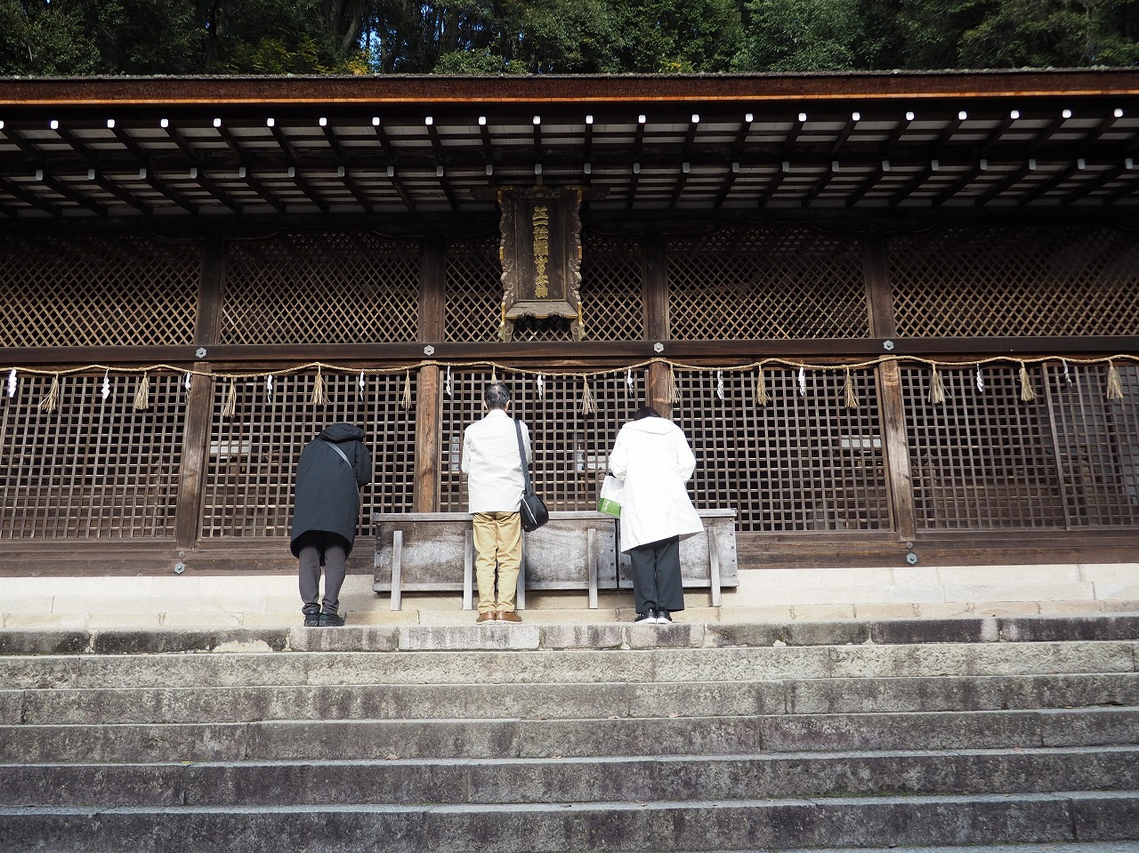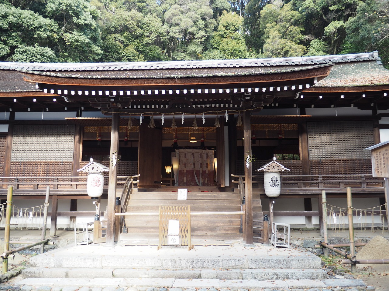 本殿はこの奥にありよく見えませんが、鎌倉時代初期のもので国の重要文化財に指定されています。また本殿には、拝観はできませんが菟道稚郎子命の御神像がお祀りされています。