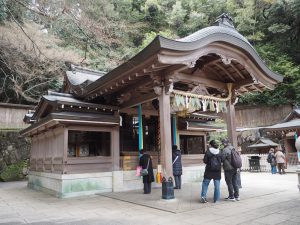 山門をくぐると山に向かって一直線に参道が延び、突き当たりに大日如来をお祀りする本堂がありますが、その手前で左に折れる参道を上がっていくと石段の先に鳥居が見えます。そこが三宝荒神をお祀りするお社、三宝荒神大祭はこちらの拝殿で行われます。