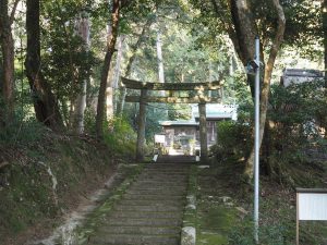 鳥居をくぐり正面の石段上に社殿が見えますが、こちらは摂社の小野篁神社です。まずは左手前の小径から小野神社へ。