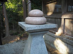 粢は神前にお供えするお餅のようなもので、水に浸した白米を臼で搗き、細長い卵形をしていました。餅米によるお餅ではないので、五平餅のような感じだったのでしょう。現在も毎年秋に粢を神前にお供えし五穀豊穣を祈念する粢祭が行われ、菓子業界の人たちが参列するそうです。神社の祭礼というと普通は神職の方が中心になって行いますが、粢祭は十二人衆と呼ばれる宮年寄が中心になり執り行うとのこと。この辺りにも宮座が残っているということで、さすが歴史ある土地だなと感じ入ります。