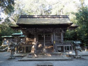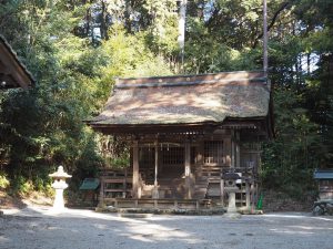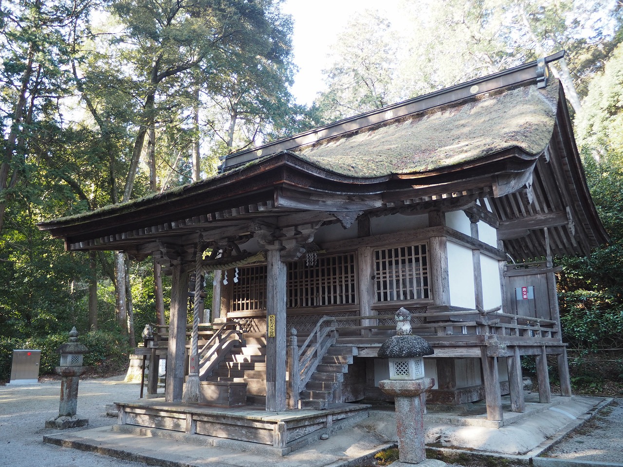 石段を上がっていくと現れたのはこちらの本殿です。先ほどの小野篁神社同様こじんまりとしていますが風格が感じられます。暦応四年(一三四一)に建てられたもので、こちらも国の重要文化財に指定されています。小野篁神社と小野道風神社は社殿が一つあるのみですが、存在感があります。小野氏の祖をお祀りしている小野神社よりややもすると立派な感じがします。社殿を建てたとされる南北朝時代に、篁も道風も実在の人物として親近感が強かったはずですから、そうしたことも社殿の建築に関係しているかもしれません。
